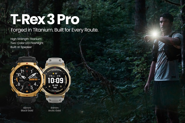 Amazfit (อเมซฟิต) T-Rex 3 Pro สมาร์ทวอทช์รุ่นเรือธงใหม่ล่าสุดจาก Zepp Health (NYSE: ZEPP) ที่ออกแบบมาเพื่อนักวิ่งเทรล นักกีฬาสายอึด และนักผจญภัยกลางแจ้งอย่างแท้จริง มาพร้อมสเปกระดับท็อป หน้าจอ AMOLED กระจก Sapphire Glass กันรอยขีดข่วน, ตัวเรือนไทเทเนียมอัลลอยด์เกรด 5 สุดแกร่ง, ระบบแผนที่ออฟไลน์พร้อมการนำทางแบบละเอียด, แบตเตอรี่ใช้งานได้นานสูงสุด 25 วัน และฟีเจอร์สำหรับกีฬาและสุขภาพแบบครบวงจร เพื่อรองรับทุกกิจกรรม Outdoor ที่ท้าทาย